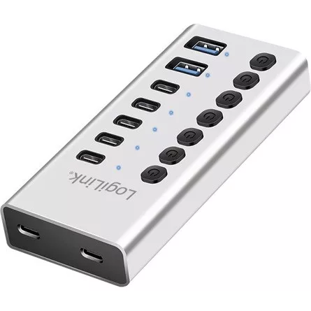 Logilink USB 3.2 Gen1 hub, 7 port kábellel/adapterrel, USB-A/C, ki/be kapcsoló, alumínium