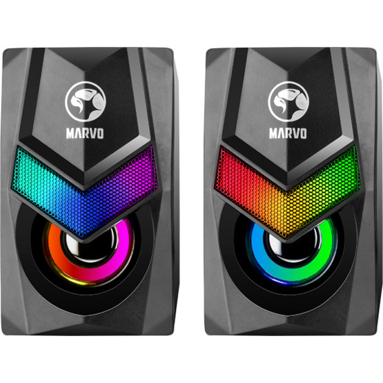 A Marvo SG-118 egy RGB világítással rendelkező 2.0 sztereó gaming hangszóró (soundbar), amely USB-ről táplálkozik és 3,5 mm-es AUX bemenettel is rendelkezik. A hangszórók egyenként 3 wattos teljesítményűek, összesen 6 watt RMS teljesítményt biztosítanak, és 150 Hz-től 20 kHz-ig terjedő frekvenciatartományban szólalnak meg, így tiszta és erőteljes hangzást nyújtanak. Kompakt és modern megjelenése miatt ideális kiegészítő bármilyen gamer asztalhoz. Az in-line vezérlő segítségével könnyen szabályozható a hangerő.