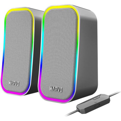 A Marvo SG-285 GY egy 2.0 sztereó RGB világítással rendelkező vezetékes gaming hangszóró. A hangszórók összesen 6 watt RMS teljesítményt nyújtanak (2 x 3 W), és a frekvenciatartomány 150 Hz és 20 kHz között van. A hangszóró csatlakozása USB-s tápellátás és 3,5 mm-es audio jack, így könnyen csatlakoztatható számítógéphez vagy más audioforráshoz. A hangerőszabályzóval és az 5 RGB világítási mód valamelyikével testreszabható a hangzás és megjelenés.