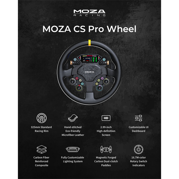 Moza Racing kiegészítő - CS PRO Kormánykerék (Dual Clutch, RGB, 2,99 inch kijelző, 325mm)
