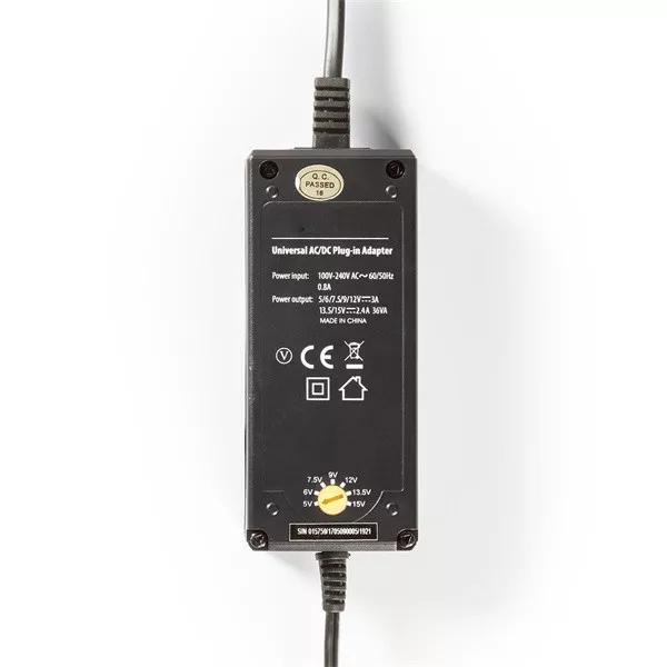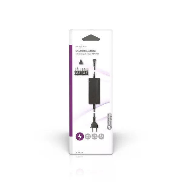 Nedis ACPA004 univerzális AC-DC tápegység, állítható 5V-15V, 36W, 2,4 - 3A, 6 cserélhető táp dugó