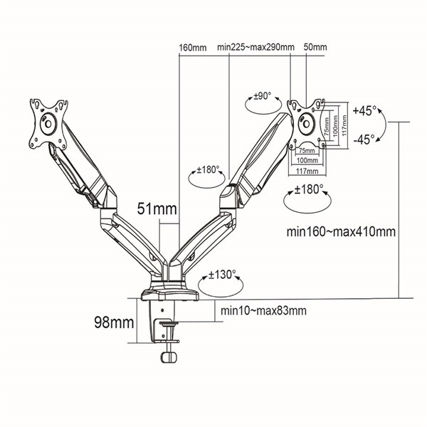 Nedis MMDOSGS110BK gázrugós asztali monitor tartó, dupla, 15-32" | 75x75 / 100x100