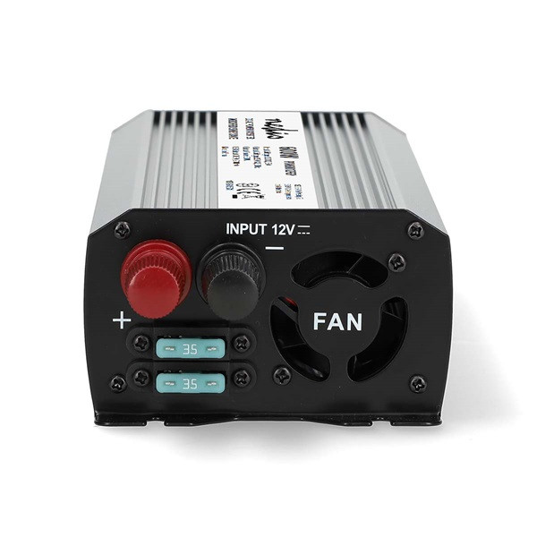 Nedis PIM60012FGY 12V DC - 230V AC inverter, 600W, Csúcsteljesítmény: 1200 W, csatlakozás: szivargyújtós, akku csipesz