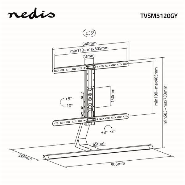 Nedis TVSM5120GY asztali LCD TV állvány (tartó konzol), 37-75", VESA 600x400, max 40kg