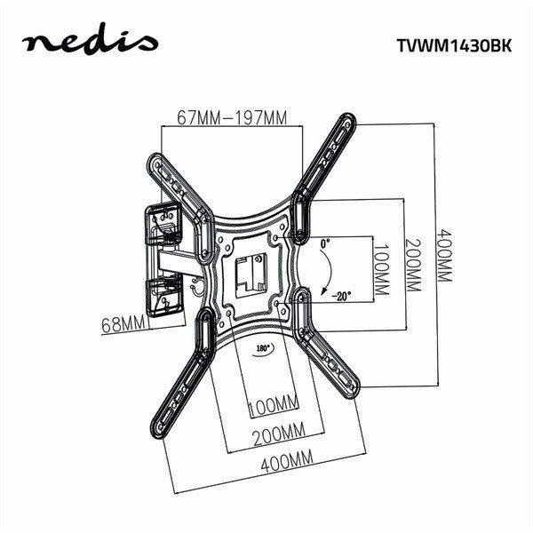 Nedis TVWM1430BK 23"-55" LCD TV / monitor fali tartókonzol, maximum 30 kg, forgatható / dönthető, 2 forgáspont