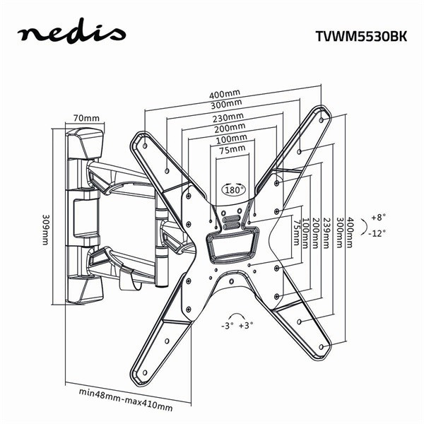 Nedis TVWM5530BK 23"- 55" LCD TV / monitor fali tartókonzol, maximum 30 kg, forgatható / dönthető, 3 forgáspont