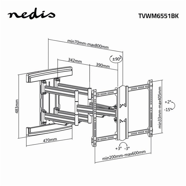 Nedis TVWM6551BK 37"- 80" LCD TV / monitor fali tartókonzol, maximum 70 kg, forgatható / dönthető, 6 forgáspont
