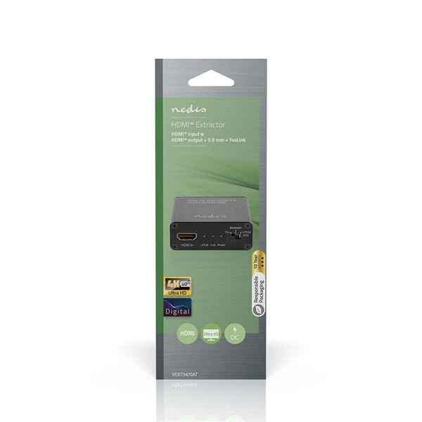 Nedis VEXT3470AT HDMI jel leválasztó (extractor), HDMI bemenet - HDMI kimenet, TosLink anya,  3,5 mm jack anya, 4K@60Hz