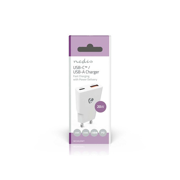 Nedis WCHA20WT gyorstöltő USB-A / USB-C töltő, PD3.0, 20W