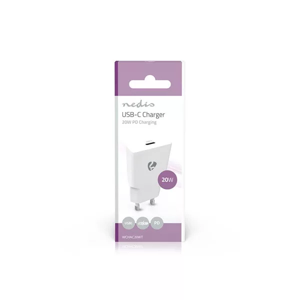 Nedis WCHAC20WT fali USB töltő, 20 W, GaN, PD3.0, 1,67 / 2,22 / 3,0 A, USB-C, automatikus feszültségválasztás
