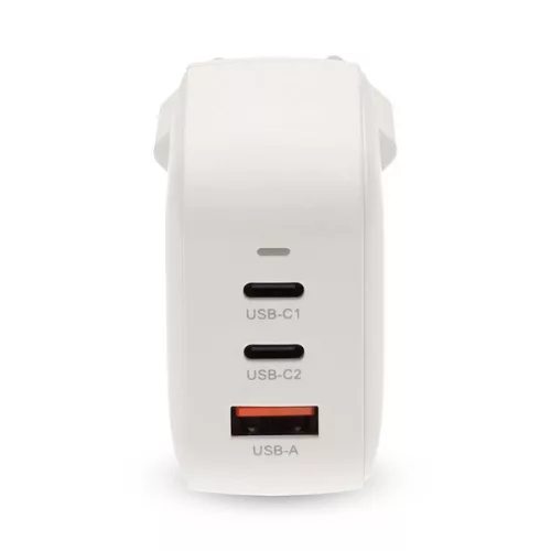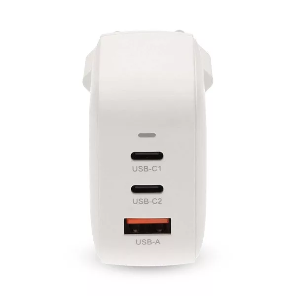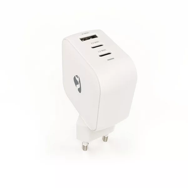 Nedis WGCHA70WWT töltő 70 W, GaN, PD3.0, QC 1,5 / 2,25 / 2,5 / 3,0 / 3,5 A, Kimenetek száma: 3, USB-A / 2x USB-C, fehér