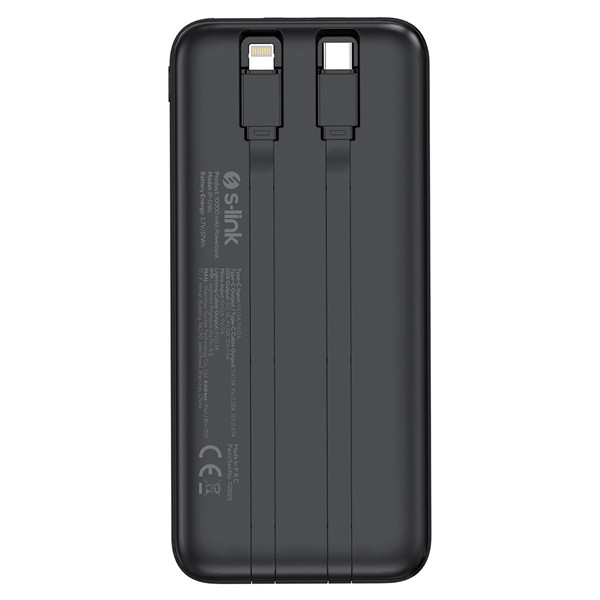S-Link Powerbank - IP-G16L 10000mAh (3x Type-C, Lightning, 20W PD, led, fekete)