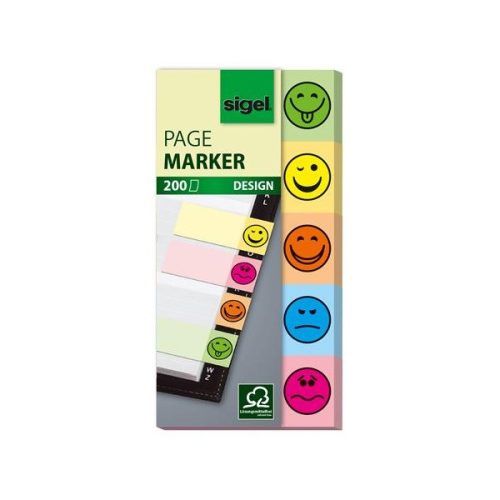 SIGEL Jelölőcímke, papír, 5x40 lap, 20x50 mm, SIGEL "Smile", vegyes szín