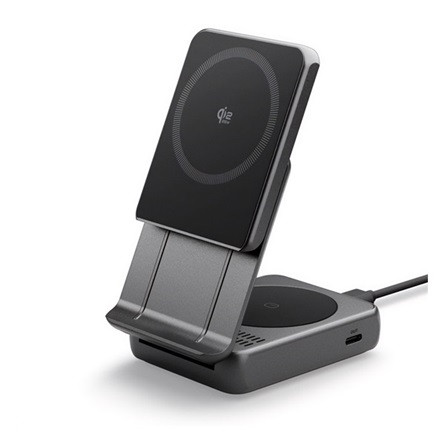 SPIGEN EF302MOQ asztali töltő 2in1 (25W, wireless, MagSafe, AirPods töltő, Qi2) FEKETE