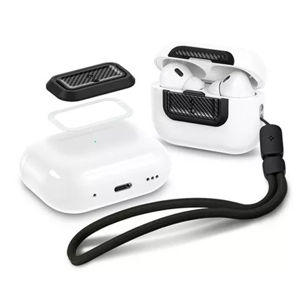 SPIGEN LOCK FIT M műanyag tok (ütésállóság, karabíner, kézpánt, karbon minta) FEKETE Apple AirPods Pro 1/2