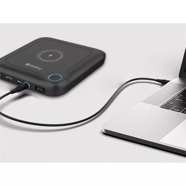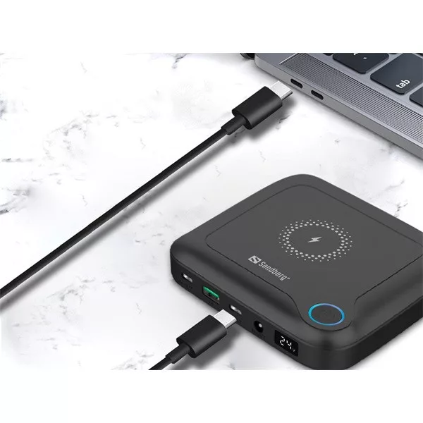 A Sandberg All-in-1 Laptop Powerbank 25000 a mobil áramforrásod a készülékeidhez – beleértve a laptopodat vagy MacBookodat is. Az erőteljes, 25,000 mAh-s akkumulátor elegendő energiát biztosít több okostelefon feltöltéséhez vagy több extra munkaórához a laptopodon. A powerbank gyorsan töltődik USB-C vagy DC-in keresztül, és energiát ad le USB-C, USB-A és DC kimeneten keresztül. A DC kimenet 12–24 V között állítható, és adapterek segítségével a legtöbb DC bemenettel rendelkező laptophoz illeszthető, így könnyen ellátható árammal a különböző eszközök széles skálája. Ráadásul egy integrált 15 W-os vezeték nélküli gyorstöltő lehetővé teszi, hogy teljesen kábelmentesen töltsd fel az okostelefonodat. Kompakt kialakításával és mindössze 500 g súlyával a powerbank könnyen elfér a táskádban, és ideális tartalék áramforrás, amikor úton vagy, az irodában vagy utazás közben.