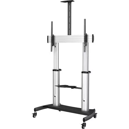 StarTech.com STNDMTV100. Maximális súlykapacitás: 100 kg, Min. képernyőméret: 152,4 cm (60"), Max. kompatibilis képernyőméret: 2,54 M (100"), Min. VESA konzolos rögzítés: 200 x 200 mm, Max. VESA konzolos rögzítés: 1000 x 600 mm. Magasságbeállítási tartomány: 1200 - 1700 mm, Billenési szög tartománya: -10 - 5°. Termék színe: Fekete, Ezüst