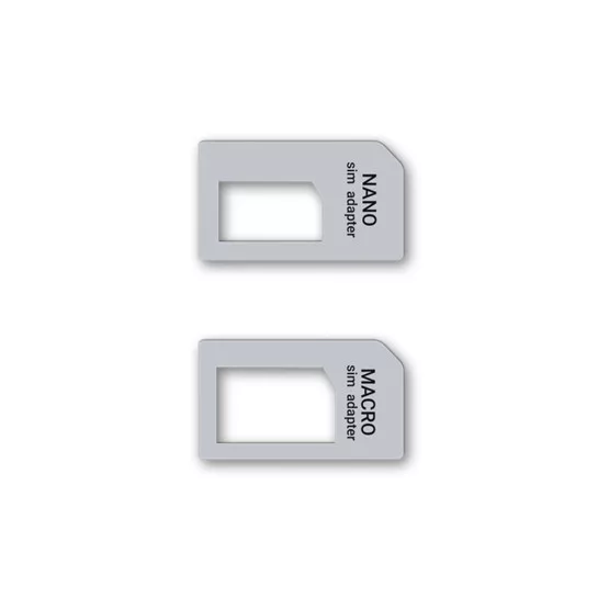 SIM kártya adapter készlet műszaki adatok Kartondoboz anyaga Kraft, környezetbarát SIM tű anyaga Rozsdamentes acél SIM tű vastagsága 0.60 mm Nano / Micro SIM adapter anyaga PVC Nano / Micro SIM adapter vastagsága 0.67 mm Nano SIM adapter belső méretei 12.60 x 9.10 mm Micro SIM adapter belső méretei 15.10 x 12.10 mm Súly 1 g