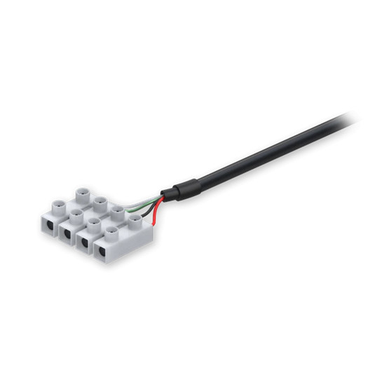 Áramkábel általános jellemzői Bemeneti csatlakozó 4-utas csavaros sorkapocs Kimeneti csatlakozó 4 tűs, 3 mm lépésköz Kábel 4 x 0.129 mm² (26 AWG) Teljes kábelhossz 2000 mm Színkódolás 1 piros - Táp + 2 fekete - Föld – 3 zöld - Bemenet/Kimenet/Nem csatlakoztatott (NC) 4 fehér - Bemenet/Kimenet/Nem csatlakoztatott (NC) RoHS megfelelőség Igen