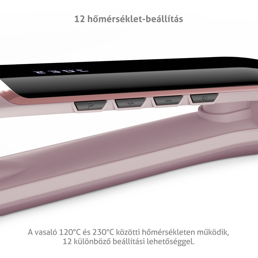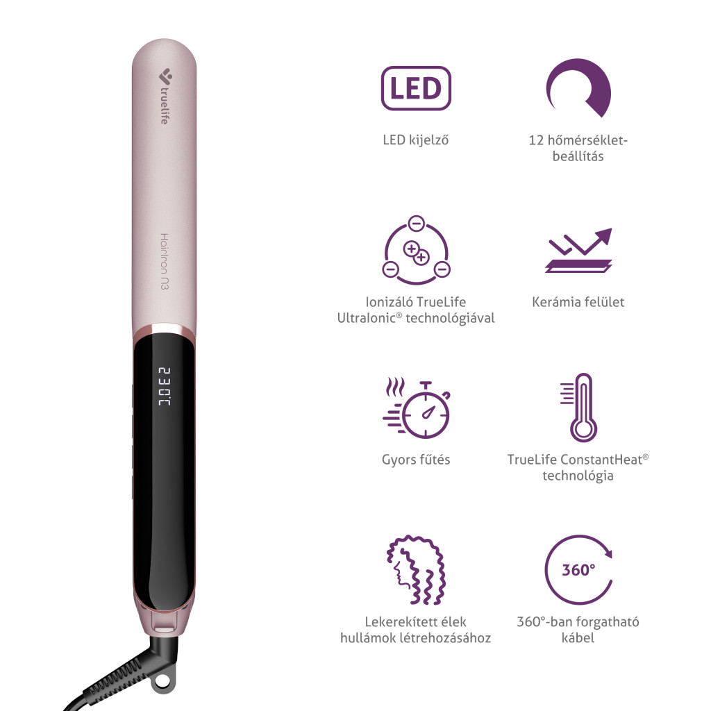 Hajvasaló ionizálóval TrueLife UltraIonic® technológiával, LED kijelzővel, 12 hőmérsékleti beállítással, kerámia felülettel, gyors melegítéssel, TrueLife ConstantHeat® állandó hőmérséklethez, zárral, forgó kábellel.