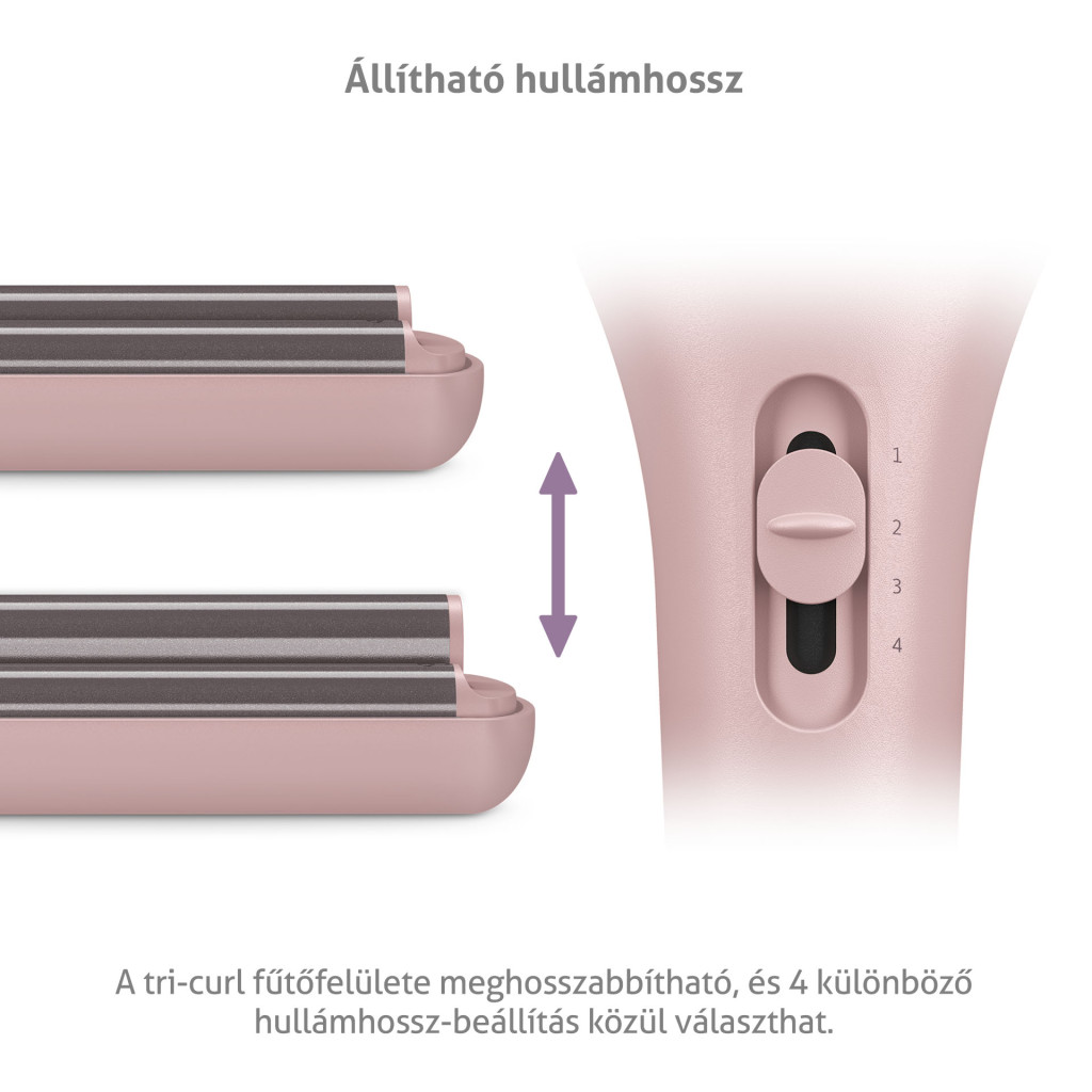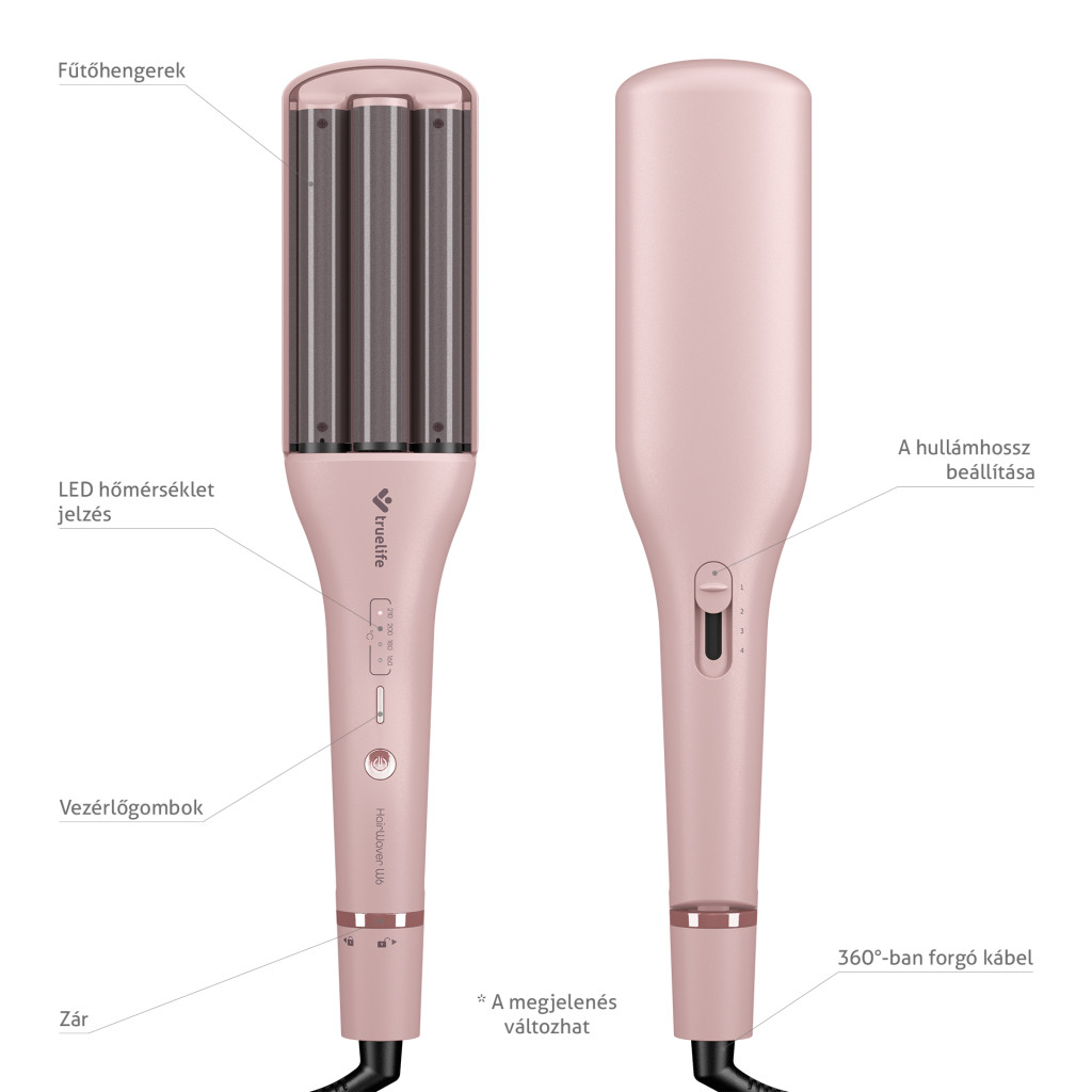TrueLife HairWaver W6 hármas hajcsavaró 3 fűtőrésszel, TrueLife ConstantHeat® technológiával az állandó hőmérsékletért, 4 hullámhossz opcióval, 4 hőmérsékleti fokozattal, kerámia felülettel, gyors melegítéssel, zárral, 2m 360°-ban forgó kábellel.