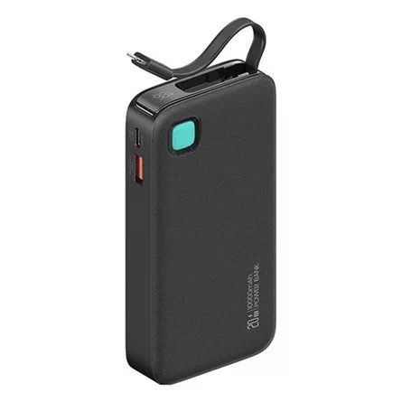 USAMS CD225 vésztöltő USB+Type-C aljzat 10000mAh, LED kijelző + fix lightning kábel, FEKETE