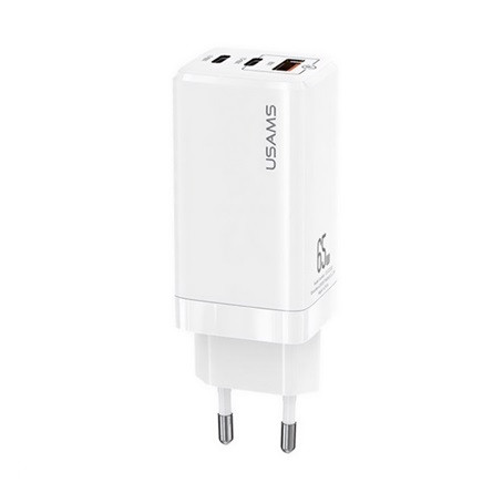 USAMS MT hálózati töltő 2 Type-C+USB aljzat 65W, PD gyorstöltő 3.0, FEHÉR