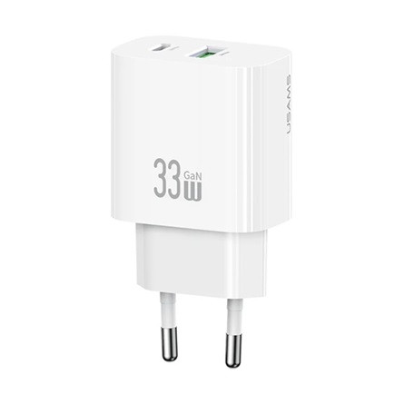 USAMS T65 hálózati töltő USB+Type-C aljzat 33W, PD gyorstöltő, FEHÉR