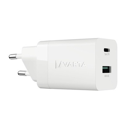 VARTA hálózati töltő USB+Type-C aljzat 38W, PD gyorstöltő 3.0, FEHÉR