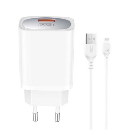 XO CE19 hálózati töltő USB aljzat (18W, PD gyorstöltő + lightning kábel) FEHÉR