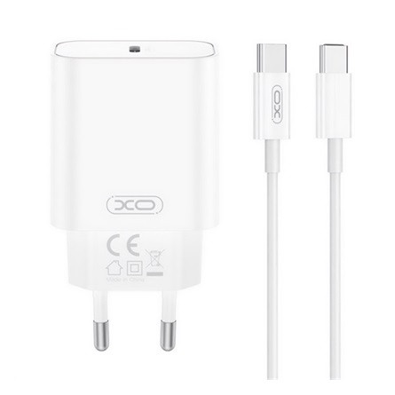 XO CE32 hálózati töltő Type-C aljzat (20W, PD gyorstöltő 3.0 + Type-C kábel) FEHÉR