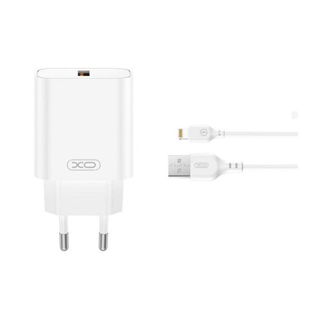 XO CE33 hálózati töltő USB aljzat (18W, gyorstöltő 3.0 + lightning kábel) FEHÉR