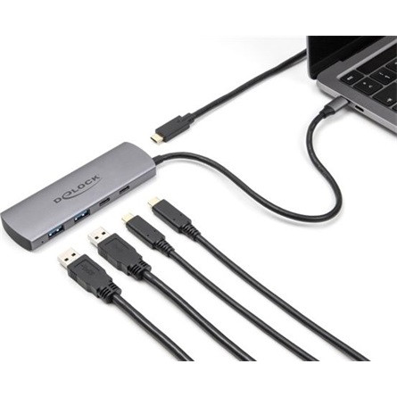 Delock USB 10 Gbps Hub 2 A-típusú USB port és 2 USB Type-C port USB Type-C csatlakozóval és egy további tápporttal