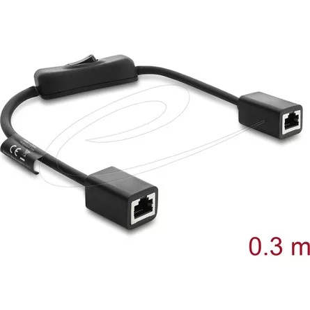 Delock RJ45 kábel, hüvely csatlakozó aljzat, kapcsolóval, Cat.6 F/UTP, 0,3 m   fekete