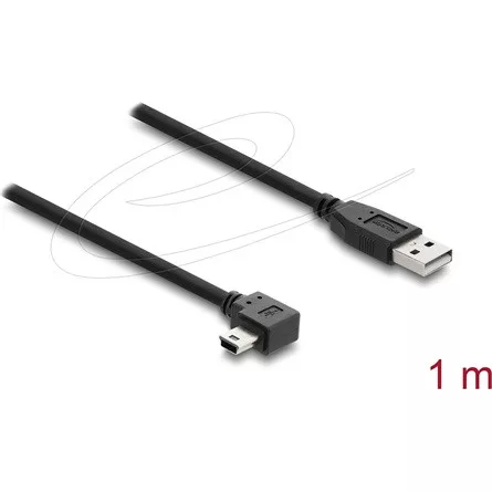 Delock USB 2.0 kábel A-típusú csatlakozódugó - Mini-B típusú csatlakozódugó, jobbra hajlítva, 1 m