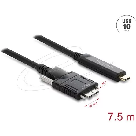 Delock Aktív optikai kábel USB 10 Gbps USB Type-C  apa > USB 10 Gbps Micro-B Típusú dugó csavarokkal ellátott 7,5 m