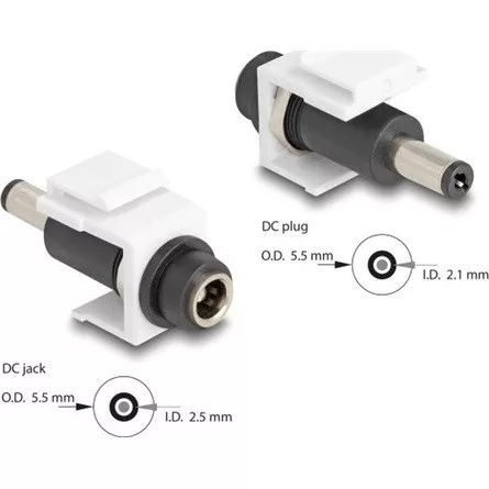Delock Keystone modul, DC 5,5 x 2,5 mm-csatlakozóhüvely, DC 5,5 x 2,1 mm méretű apa, fehér