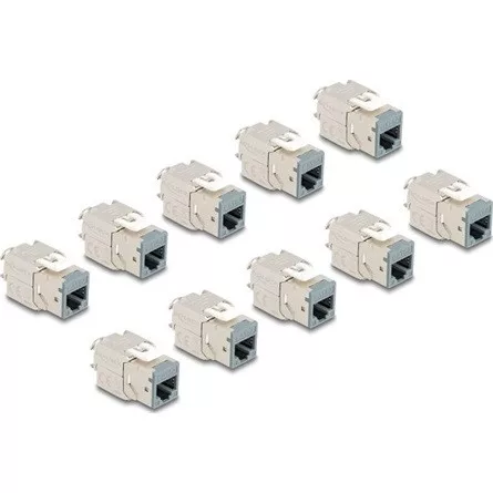 Leírás Ezek a Delock Keystone modulok használhatók hálózati kábelek összekapcsolására és alkalmasak egyszerű bepattintós foglalatba különböző helyekre, úgy, mint keystone patch panelekbe, előlapokba vagy felszínbe süllyesztett dobozokba. Műszaki adatok Csatlakozó: 1 x RJ45 hüvely 1 x LSA (szerszám nélkül szerelhető) Cat.6A specifikáció Árnyékolt (STP) TIA-568A/B bekötés Tömör és sodrott huzalhoz (26 - 22 AWG) 5,0 - 8,5 mm-es kábelátmérőhöz 19,2 x 14,9 mm-es Keystone csatlakozóportokhoz Anyaga: cink öntvény Szín: szürke Méretek (HxSzxM): kb. 39,5 x 19,6 x 16,2 mm A csomag tartalma 10 x Keystone modul 10 x Kábelkezelő 10 x kábelkötöző Csomag Poly bag