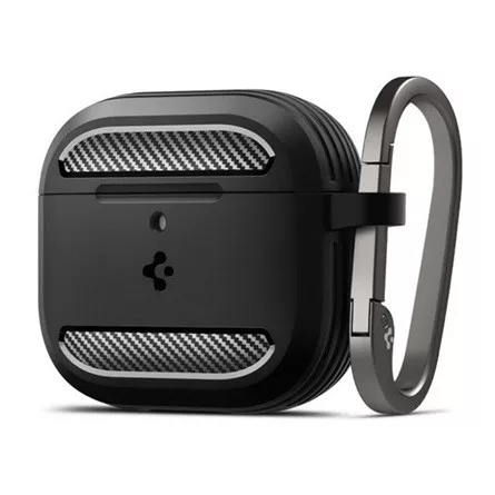 SPIGEN RUGGED ARMOR szilikon tok ütésállóság, karbon minta, FEKETE Apple AirPods 4