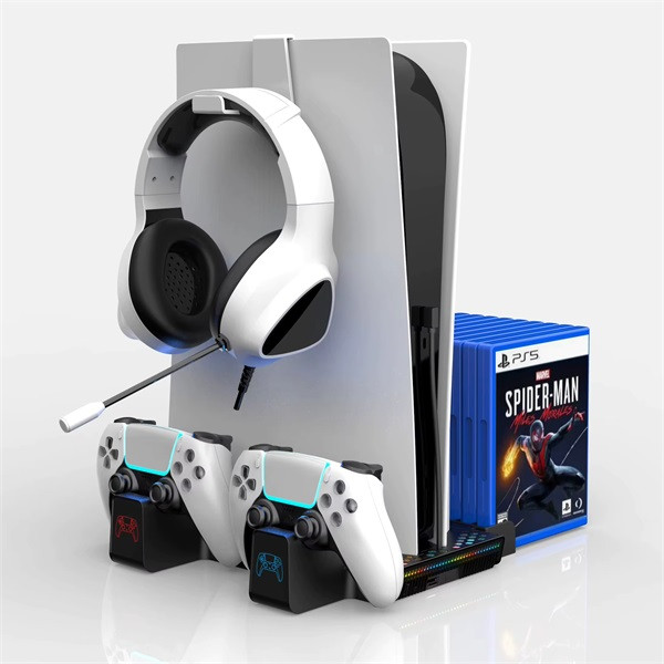 BLACKBIRD PS5 Kiegészítő Konzol hűtő Ventilátoros + Töltő állomás + Játék tartó, Fehér