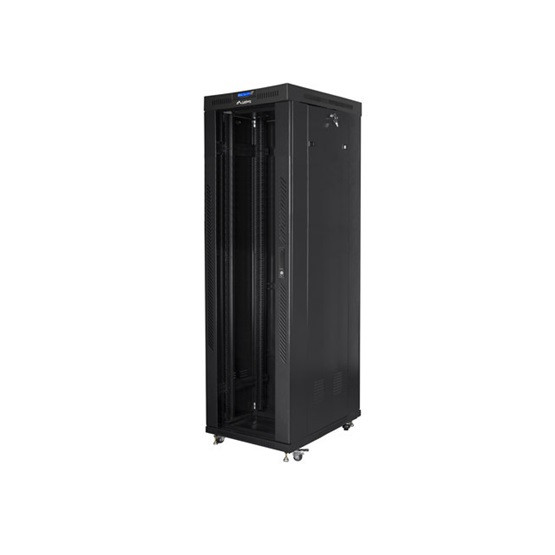 Lanberg 19" szabadon álló rack szekrény 42U/600X1000 üvegajtó, lapraszerelt, LCD kijelző, fekete V2