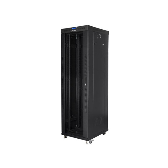 Lanberg 19" szabadon álló rack szekrény 42U/600X800 üvegajtó, lapraszerelt, LCD kijelző, fekete V2