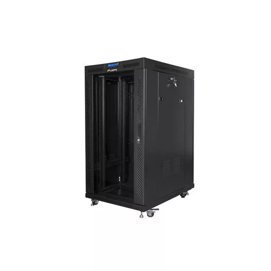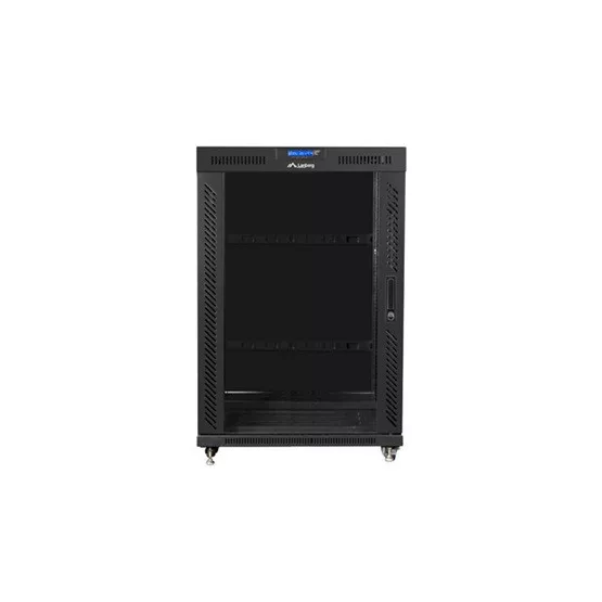 Lanberg 19" szabadon álló rack szekrény 22U/800X1000 üvegajtó, lapraszerelt, LCD kijelző, fekete V2