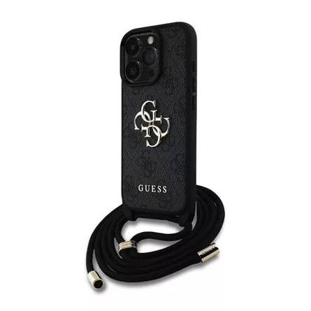 iPhone 16 Pro Max GUESS PU 4G METAL LOGO CROSSBODY STRAP műanyag telefonvédő ütésállóság, vállpánt, FEKETE