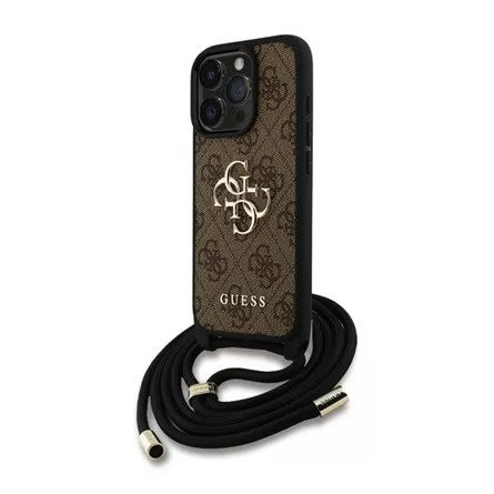 iPhone 16 Pro Max GUESS PU 4G METAL LOGO CROSSBODY STRAP műanyag telefonvédő ütésállóság, vállpánt, BARNA