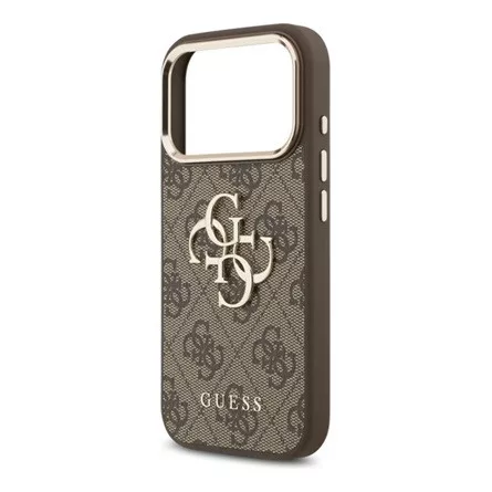 iPhone 17 Pro GUESS 4G BIG CLASSIC LOGO szilikon telefonvédő ütésállóság, bőr hatású hátlap, BARNA/ARANY
