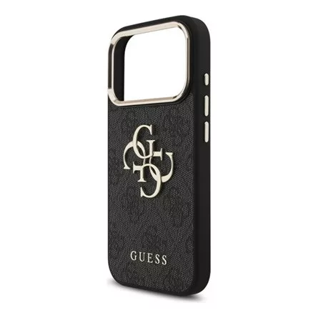 iPhone 17 Pro GUESS 4G BIG CLASSIC LOGO szilikon telefonvédő ütésállóság, bőr hatású hátlap, FEKETE/ARANY