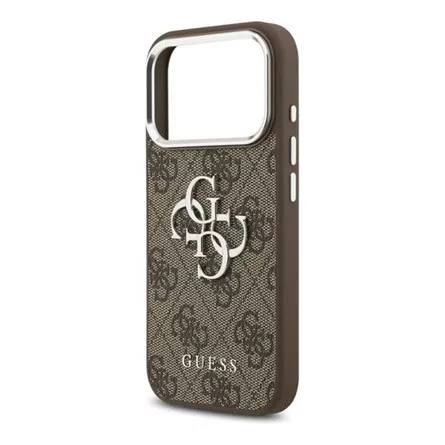 iPhone 17 Pro GUESS 4G BIG CLASSIC LOGO szilikon telefonvédő ütésállóság, bőr hatású hátlap, SÖTÉTBARNA/EZÜST