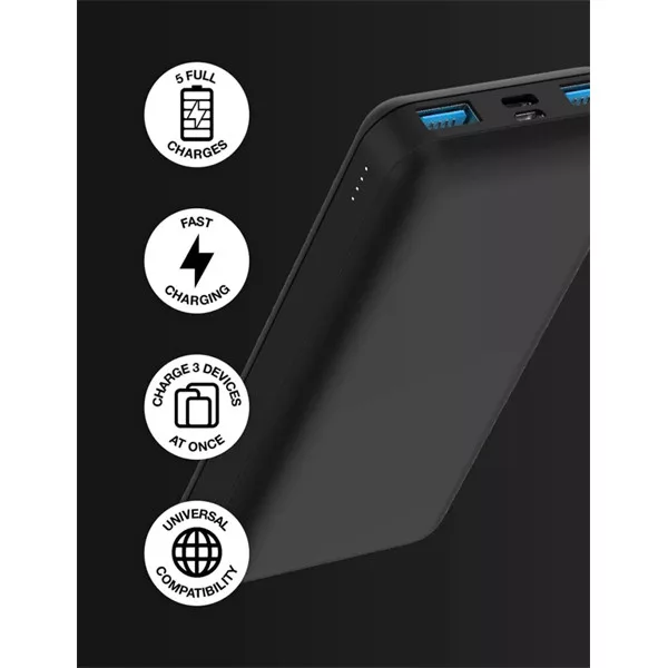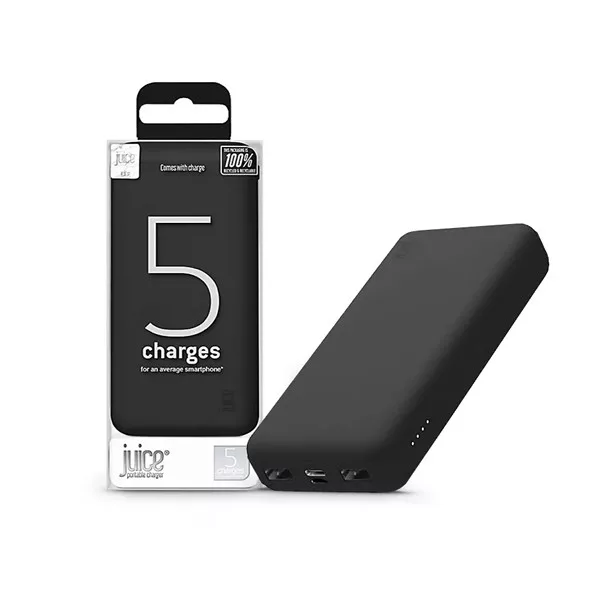 JUICE UNIVERZÁLIS HORDOZHATÓ, ASZTALI AKKUMULÁTOR TÖLTŐ - ECO 5 POWER BANK - 2XUSB +TYPE-C - 15.000 MAH - FEKETE