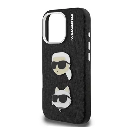 CG MOBILE iPhone 16 Pro KARL LAGERFELD GRAINED PU K&CH HEADS szilikon telefonvédő ütésállóság, 3D, FEKETE